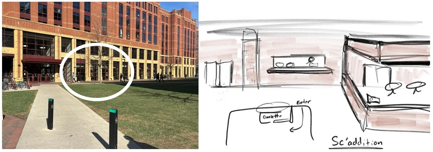 Partnered with Scott Traditions, a dining hall at Ohio State, this 4 week full class project sought to create interventions to improve the experience of students at the largest dinning hall on campus through wayfinding, a new space, and nutrient app.